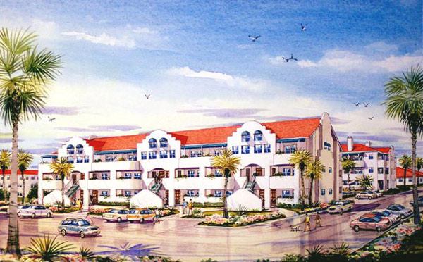 This project was designed just prior to Hurricane Ike and shelved after the storm. It would have been 30 dwelling units above a two level parking structure, the design is based on Spanish Colonial Revival.