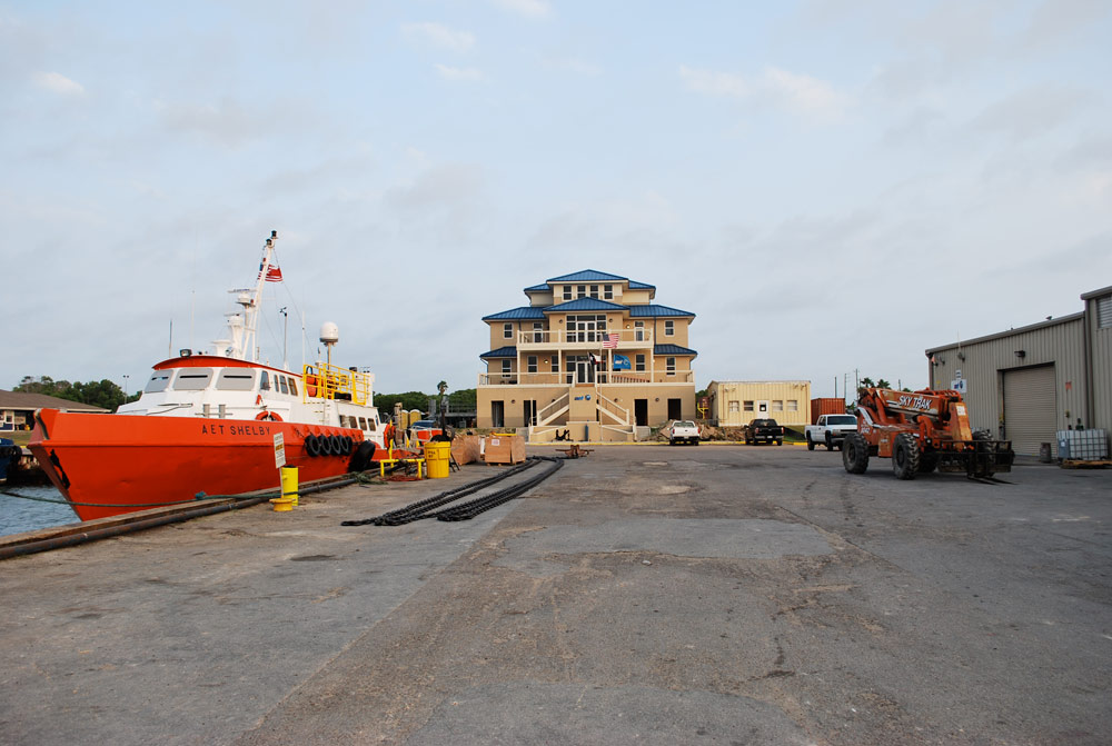 This is a schematic design drawing depicting this new building located on Pelican Island. It is now completed and occupied by the Galtex Pilots Association as their Headquarters Building.