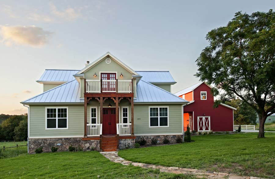 This home is located outside Austin Texas and the design based on Hill Country Vernacular, the detached garage designed in a popular style of barn.