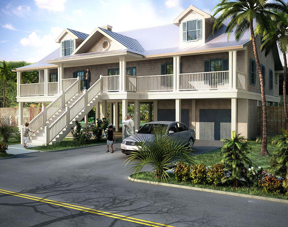 Another example of post-Ike replacement housing, this prototype features a very parge open attic space easily upgraded to provide a media room, two or three bedrooms. It is design to be either stick framed or constructed with modular units.