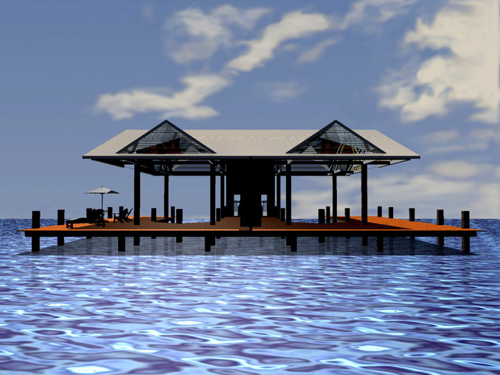 A novel concept for boathouses on Galveston Bay, this design contemplated adjacent property owners sharing a side-by-side boathouse, thus improving views of the bay from both houses.